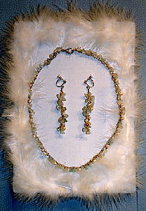 | イヤリングは、ネックレスと同様に編んだものを二つ折りにしてねじり、どこから見ても石が見えるようになっています。 | ||||||||||||