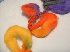 | まずは、くさり編み 毛糸の細くなった部分だけを、 くさり編みにします。 太い部分は編まずに、次の細い部分に 続けます。 太い部分が輪になり、これが花びらに なります。 花びらを7つ作って、2〜3目で切ります。 |