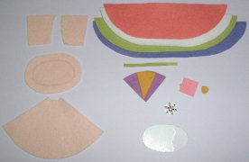 材料です。 お内裏さまの材料です。 素材は フェルトを使います。 これに 上着の着物用の布が必要です。 |