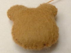 | 顔を作ります 顔用のフェルトを形に切り抜いて 縫い合わせます。 お内裏さまは クマの顔です。 中に 綿を詰めます。 詰め加減は お好みで。 今回は たっぷり詰めました。 |
