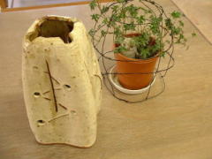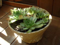 | 9月24日 植えつけ 使ってこそ器 ということで、 お気に入りのベンケイソウを植えました。 根付いてくれると良いのですが。 |