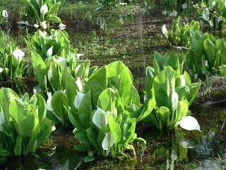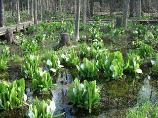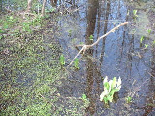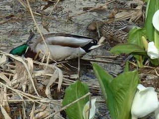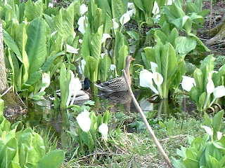 札幌市内、JR駅のすぐ近くに ある「星置緑地」では ミズバショウが 自生しています。 毎年春の初めに この花に会えるのを楽しみにしています。 今年は 2組のカモにも 出会えました。