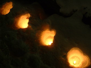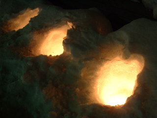 | 穴の中から 暖かい光が漏れる様子は 中に誰か住んでいそうです。 |