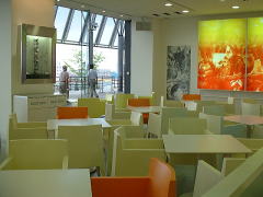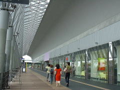 | カフェやレストラン、ショップが並ぶ プロムナード。 覆いの高さが広がりを感じさせます。 チケットを手に入れて、カフェで腹ごしらえ。 |