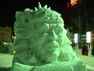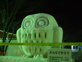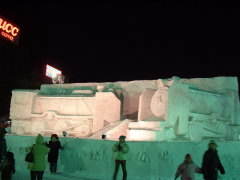 | 市民や海外チームが作る小雪像もあります。 今年は 前半、3月上旬の暖かさで 表面が融けたり、倒壊してしまった 雪像もあって、残念でした。 |