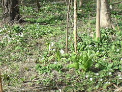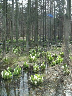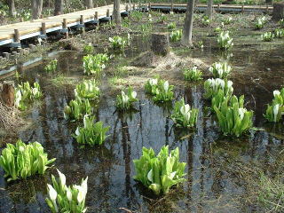 | 本州では信州・尾瀬が有名なミズバショウ、 北海道では平地で咲いています。 中でも 手稲区の星置緑地では JR駅から徒歩5分という場所で 自然の群生を見ることができます。 |