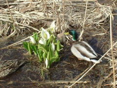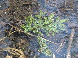 | 雪解けの透明な水の中には 去年枯れた草や落ち葉が半分朽ちていたり 新しい芽が次々と伸びて来たり その様子も見て取れます。 |