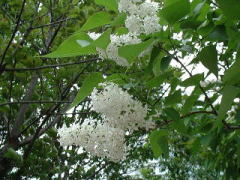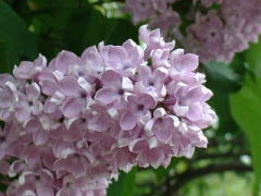 | 公園のライラックは、ベンチのすぐ後ろ、 人に一番近いところに植えられています。 花の下で甘い香りに包まれて、一休み。 そんなゆとりを持ちたいですね。 |