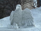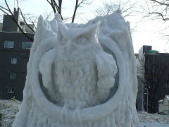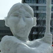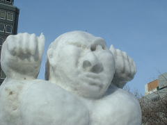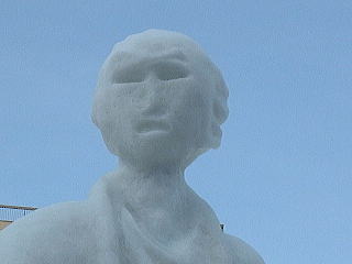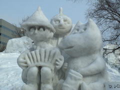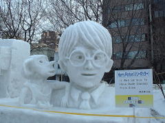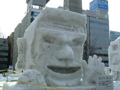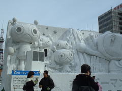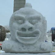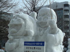 | 市民雪像は 参加型雪まつりとして人気があります デザインも様々で、見るのも楽しいです 有名人やキャラクターを集めてみました 「似てるかな?」 |