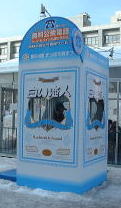 | 有名お菓子をかたどったこの箱は? 無料の公衆電話です。 「役立ち情報」を聞かなくては なりませんが… |