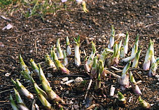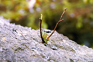 石垣に芽を出した木は、 しっかり根付いて2年目の春 案内板の脚の上に、 葉を一杯に広げるタンポポ 芽を出したばかりのギボウシは 山菜みたいでおいしそう… |