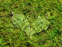 | ペイズリー型のピアス。銀線で形を作り、極細の銀線でビーズを編みつけてあります。片方に一つずつ、スワロフスキービーズが入っていて、アクセントになっています。 | ||||||||||||