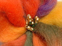 | ビーズをあしらいます そのままでも良いのですが、中心に ビーズをあしらうと花らしくなります。 ビーズの色や量はお好みで。 |