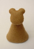 | 胴体を作ります 底用のフェルトの周りを ぐし縫いし、 厚紙をくるむようにして形を整えます。 胴のフェルトを 三角になるように縫い、 綿をたっぷりと詰めます。 胴と底を 縫い合わせます。 |