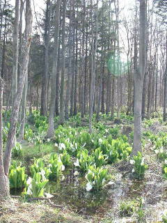 札幌市内、JR駅のすぐ近くに ある「星置緑地」では ミズバショウが 自生しています。 毎年春の初めに この花に会えるのを楽しみにしています。 今年は 2組のカモにも 出会えました。