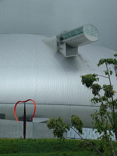 | 近くで見ると 大きいです。 迫力あります。 晴れていれば 銀色に輝いて、 さらに迫力ありそうです。 |