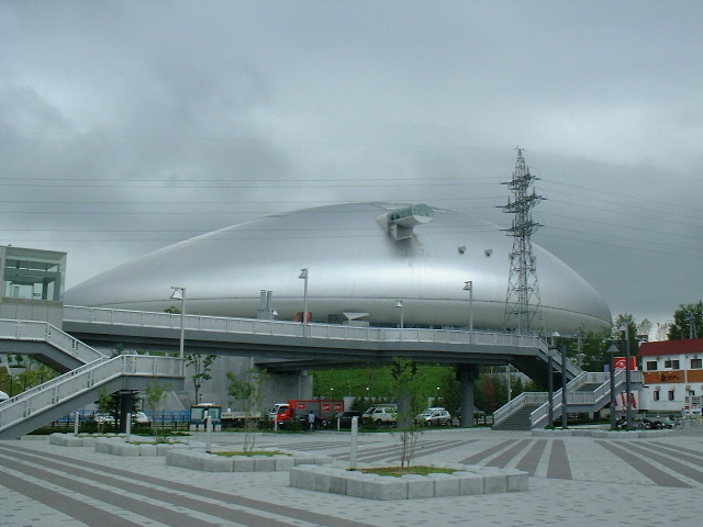 | 地下鉄福住駅を出ると そこには巨大なコンサドーレサポーターが・・ そして少し霞んで 札幌ドームが見えています。 札幌ドームは サッカーJリーグ・コンサドーレ札幌の ホームグランドのひとつです |