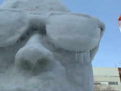 | 市民雪像は 参加型雪まつりとして人気があります デザインも様々で、見るのも楽しいです 有名人やキャラクターを集めてみました 「似てるかな?」 |